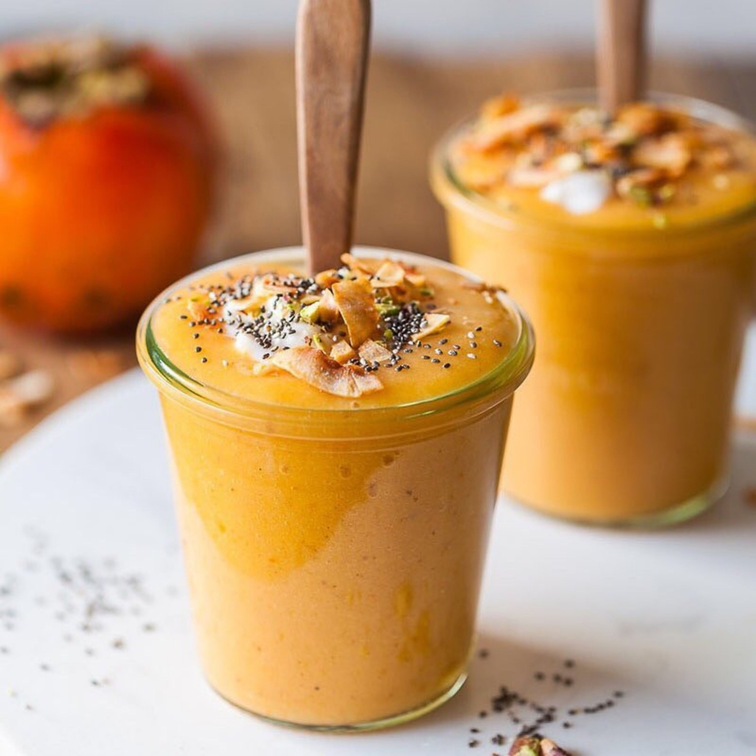 Smuti z okusom kakija. Pripravite si slasten in zdrav jesenski smuti po receptu Vibrant Plate.