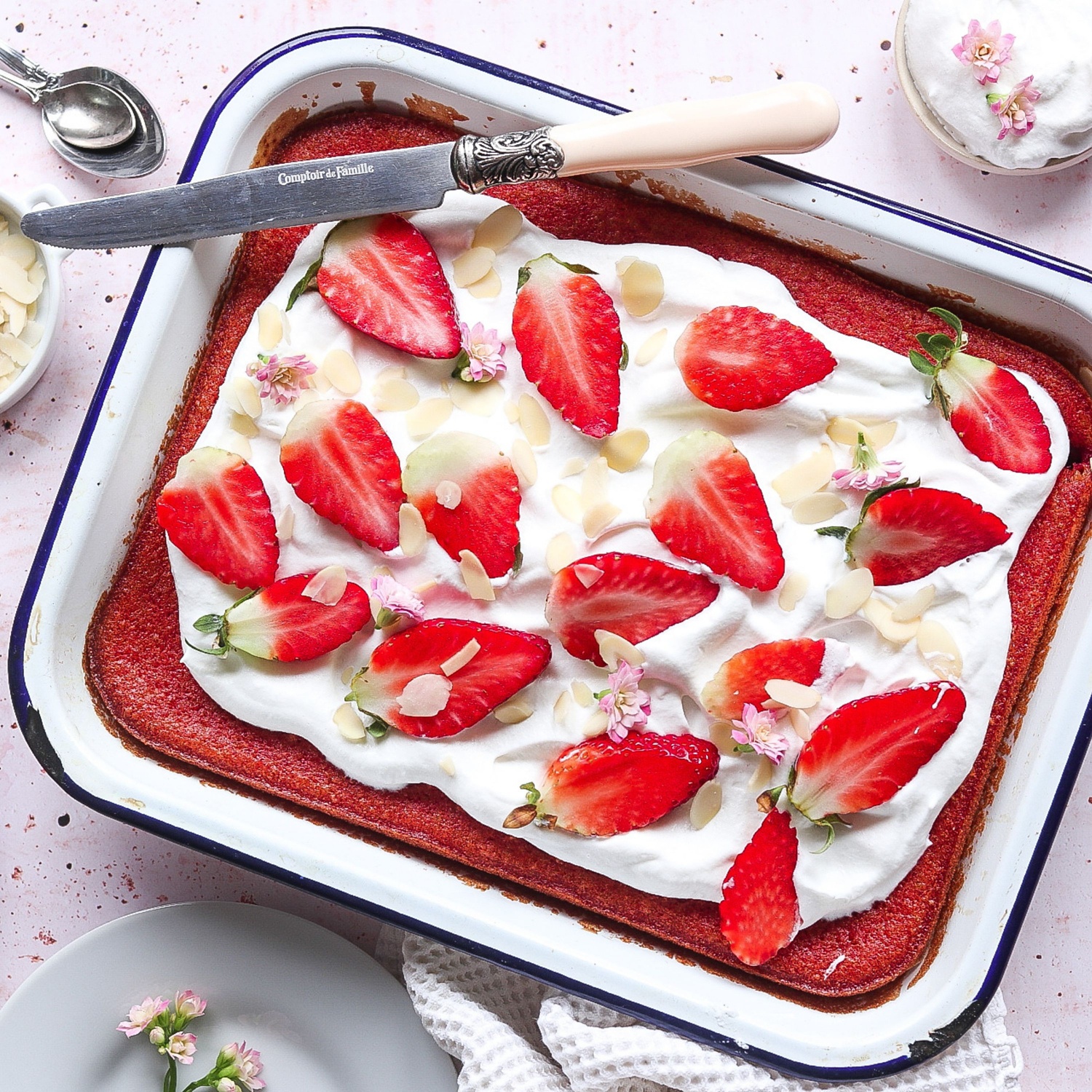 Roza biskvit z svežimi jagodami po receptu Barbarella Green Chef. Osvežilni recept, katerega osnovna sestavina je pesa.