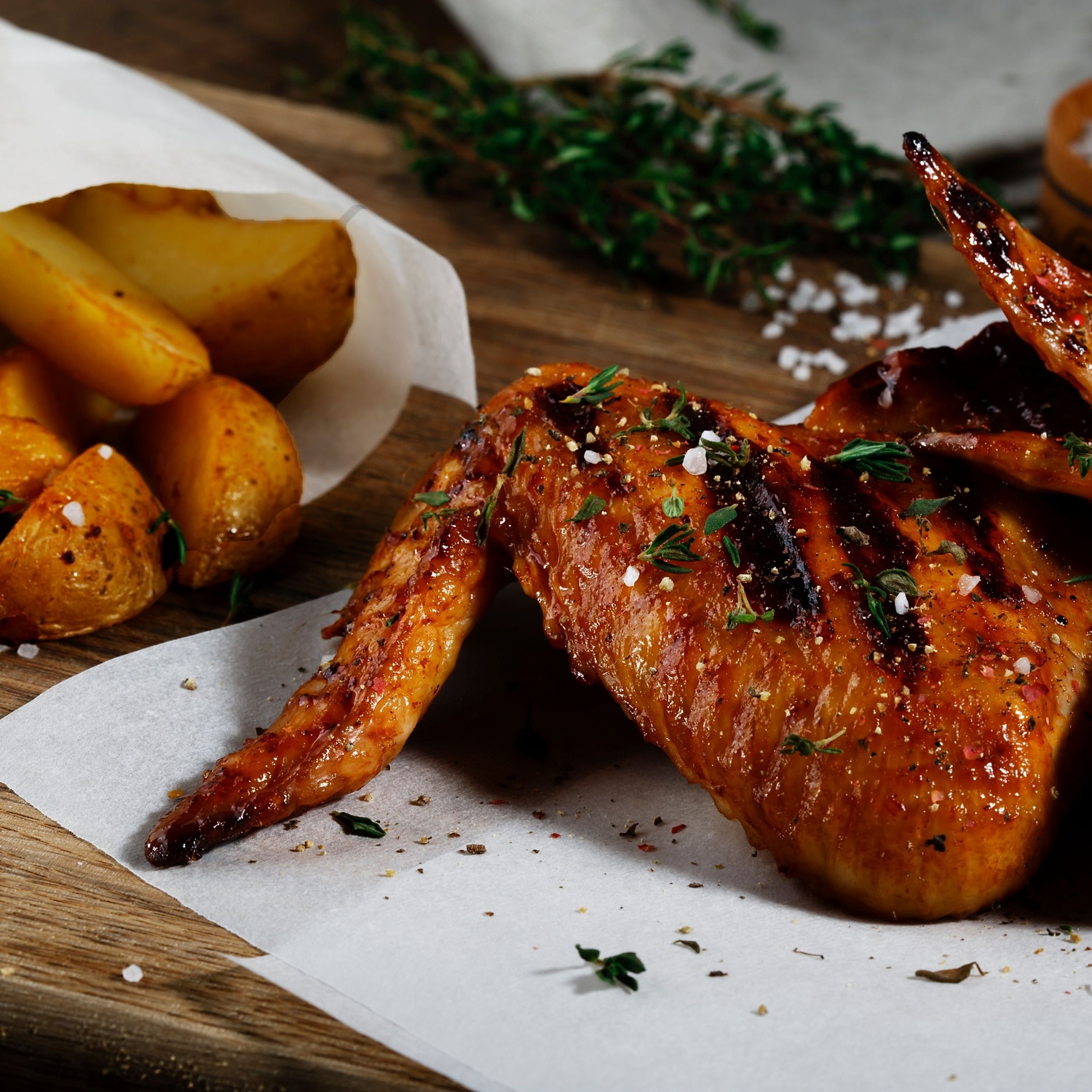 Enostavno kosilo pripravljeno samo v pečici. Krompir in perutničke v kombinaciji z rožmarinom.
