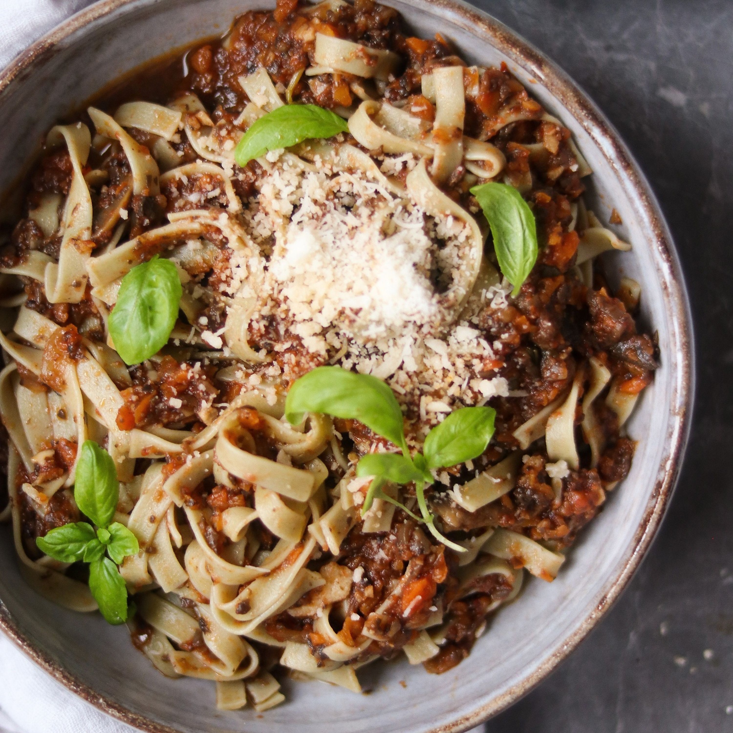 Lahkotni recept za testenine, kjer lahko mesni ragu zamenjamo z gobami in veliko nasekljane zelenjave. Recept je odličen za tiste dni, ko si želimo malo lažjih jedi. Podroben opis spodaj
