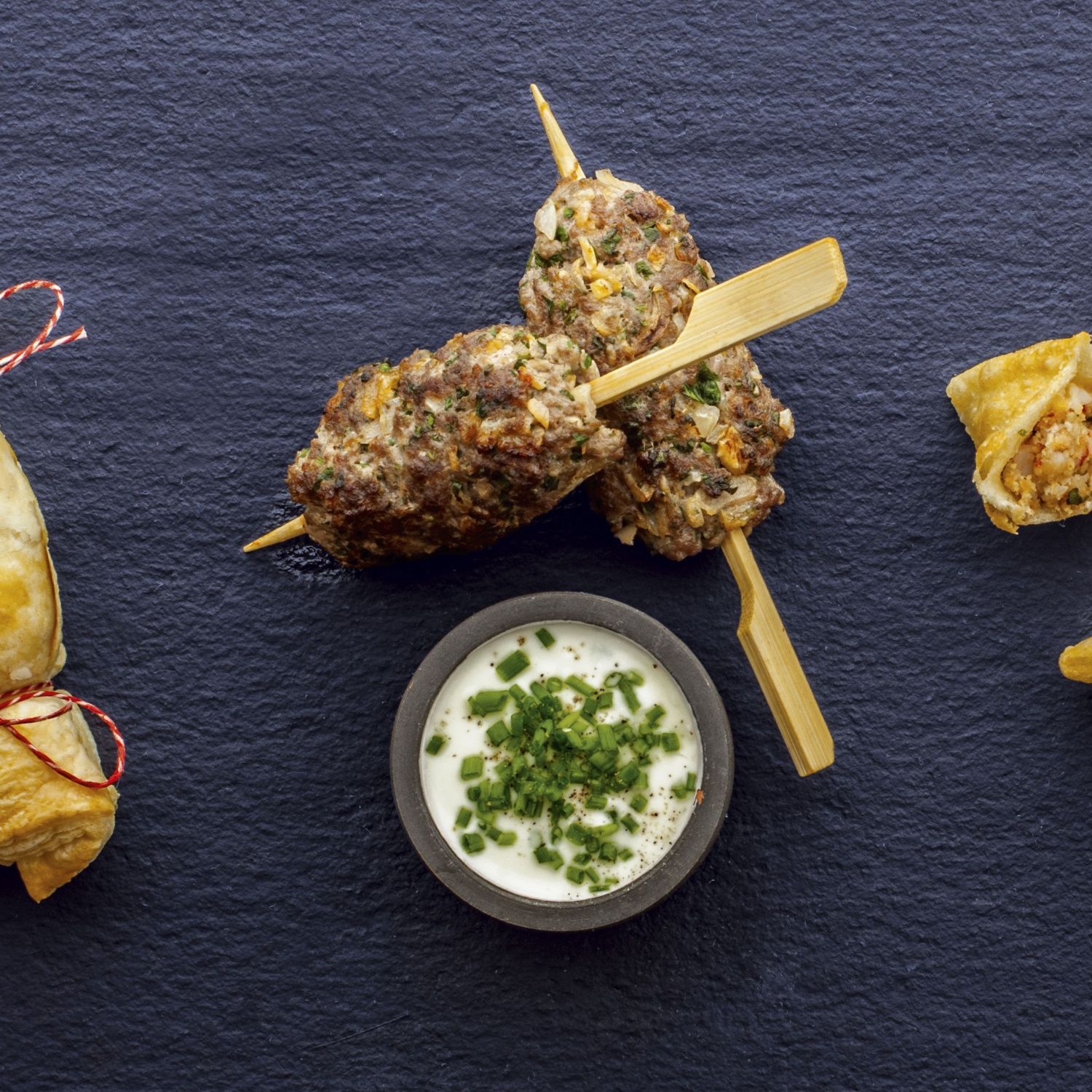 - Čebulo, česen, peteršilj in čili drobno sesekljamo. V posodi dobro premešamo mleto meso, peteršilj, čebulo, česen, čili, kumino in ovsene kosmiče ter solimo in popramo. Iz mesne zmesi oblikujemo majhne hlebčke in jih nabodemo na nabodala.