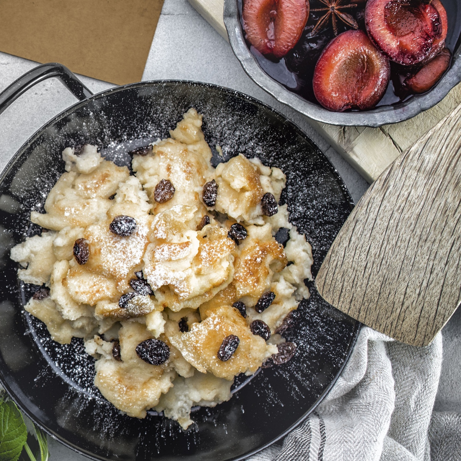 Slasten veganski carski praženec iz lanenih semen, sojinega napitka in rozin. Zdravo in okusno.